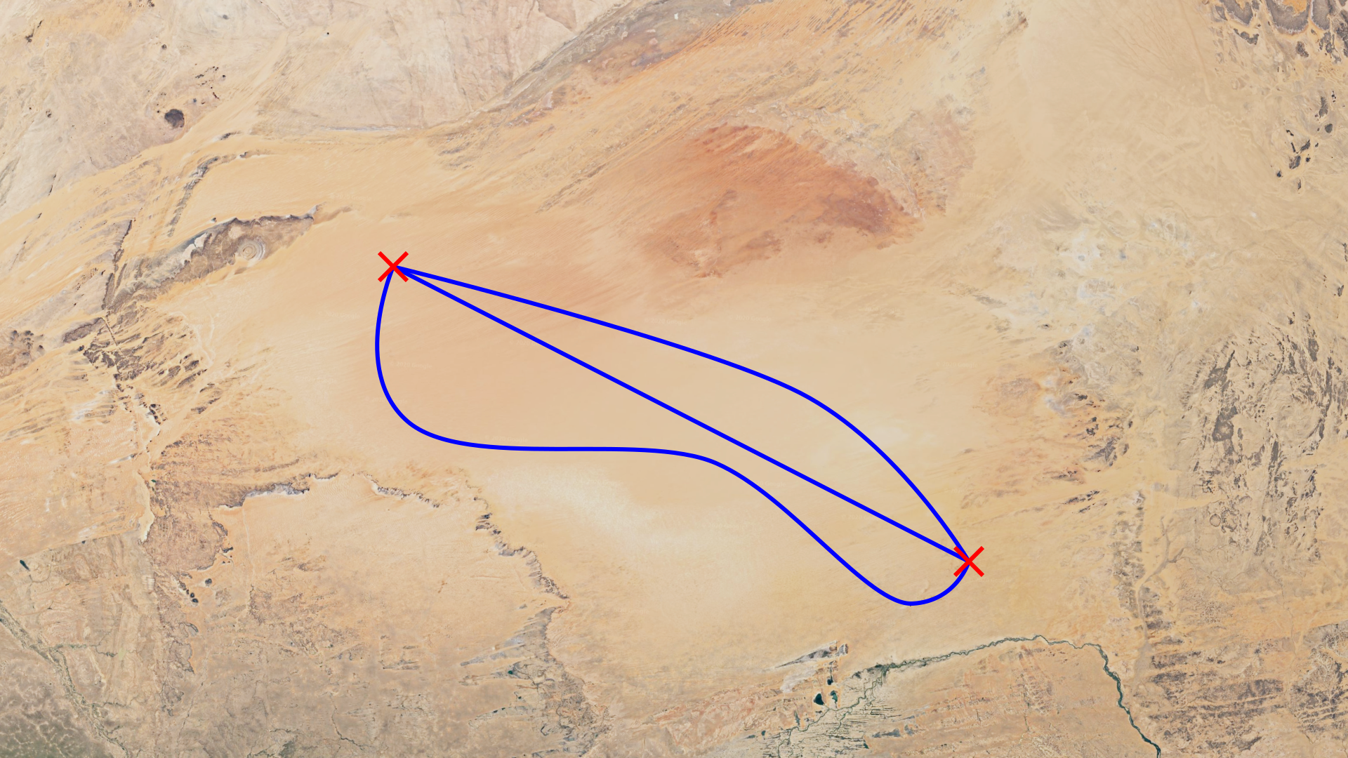 Est-ce qu’on peut dire que ce sont « les virages » qui rallongent la trajectoire ? Pas vraiment, mais le caractère « non-direct » de la trajectoire est concomitant avec l’existence de virages.